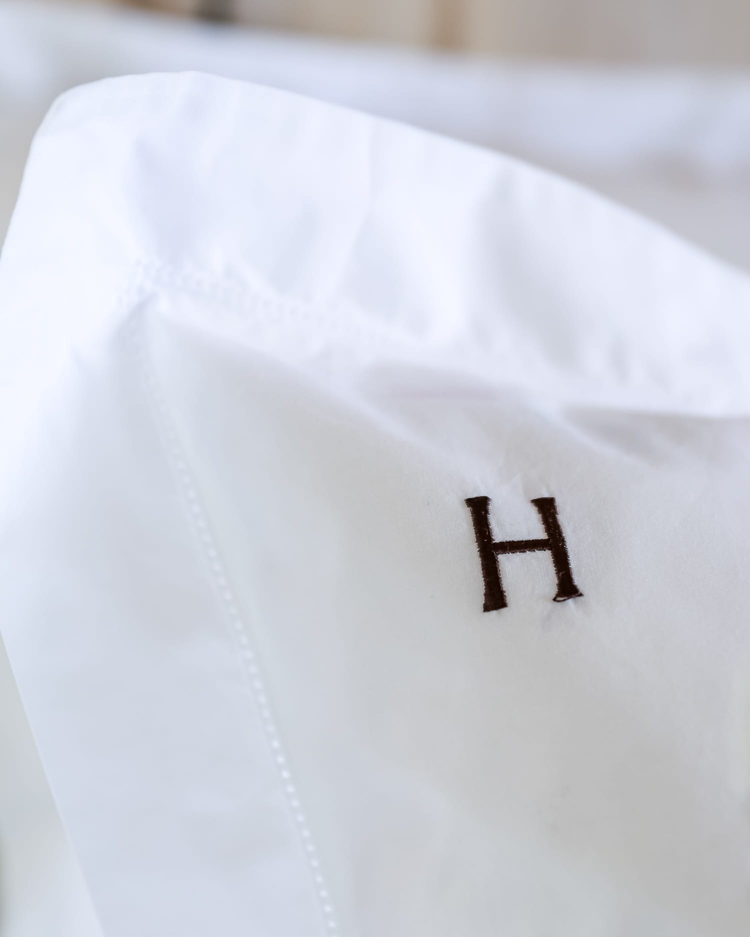 Visste du at vi har putetrekk til det jeg kaller små hotellputer? Selv synes jeg de vanlige hotellputene i 70×100 cm blir altfor mye å bale med. Derfor har vi trekk til hotellputer som måler 60×80 cm. Da får du ekstra fylde og støtte når du ligger og leser, tar kaffen eller kontoret på sengen. Hvitt og delikat, slik at du får hotellfølelsen midt i fjellheimen. Og hvis du ønsker, kan vi brodere initialene dine på putetrekkene – klassisk og personlig.