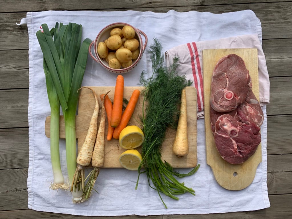 - 1,3 kg kjøtt av lam (jeg foretrekker oppskåret lammelår men grytekjøtt av lam funker selvsagt også)