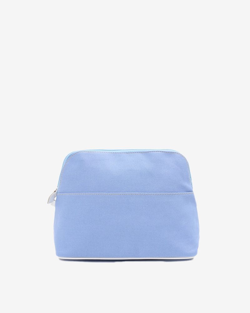 Klassisk og tidløs toalettmappe som rommer det meste både til store og små. Lyseblå med detaljer i hvitt skinn.