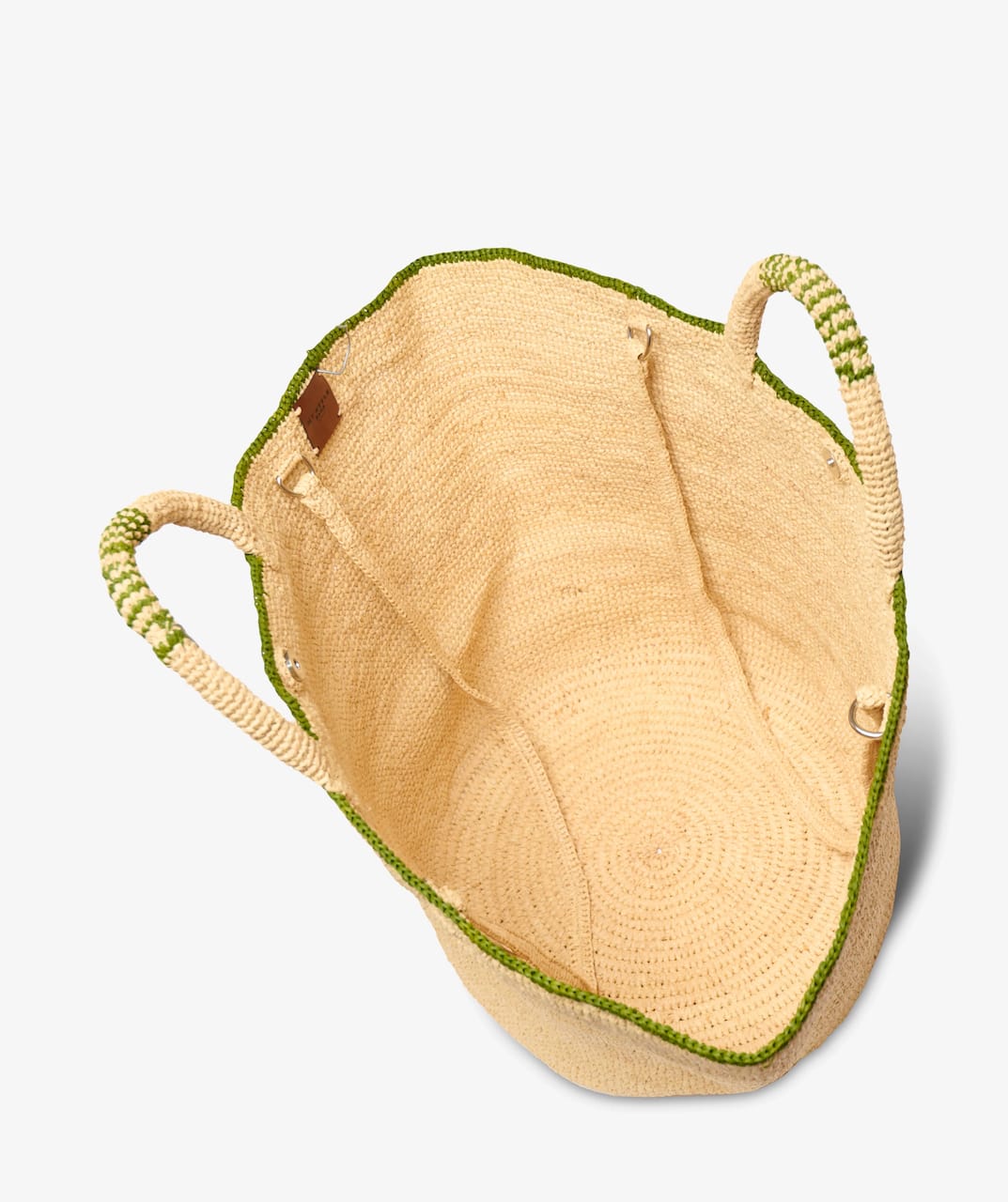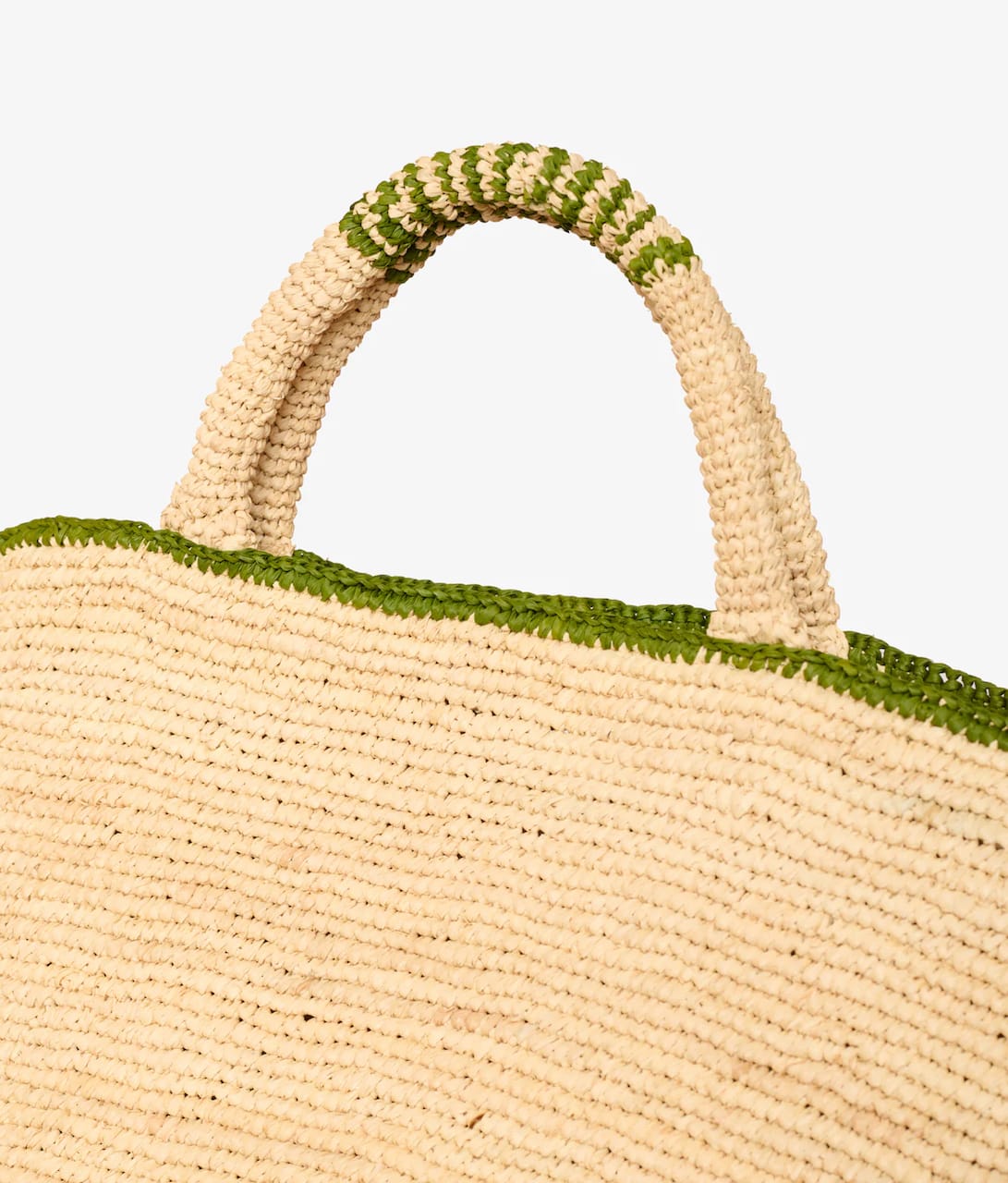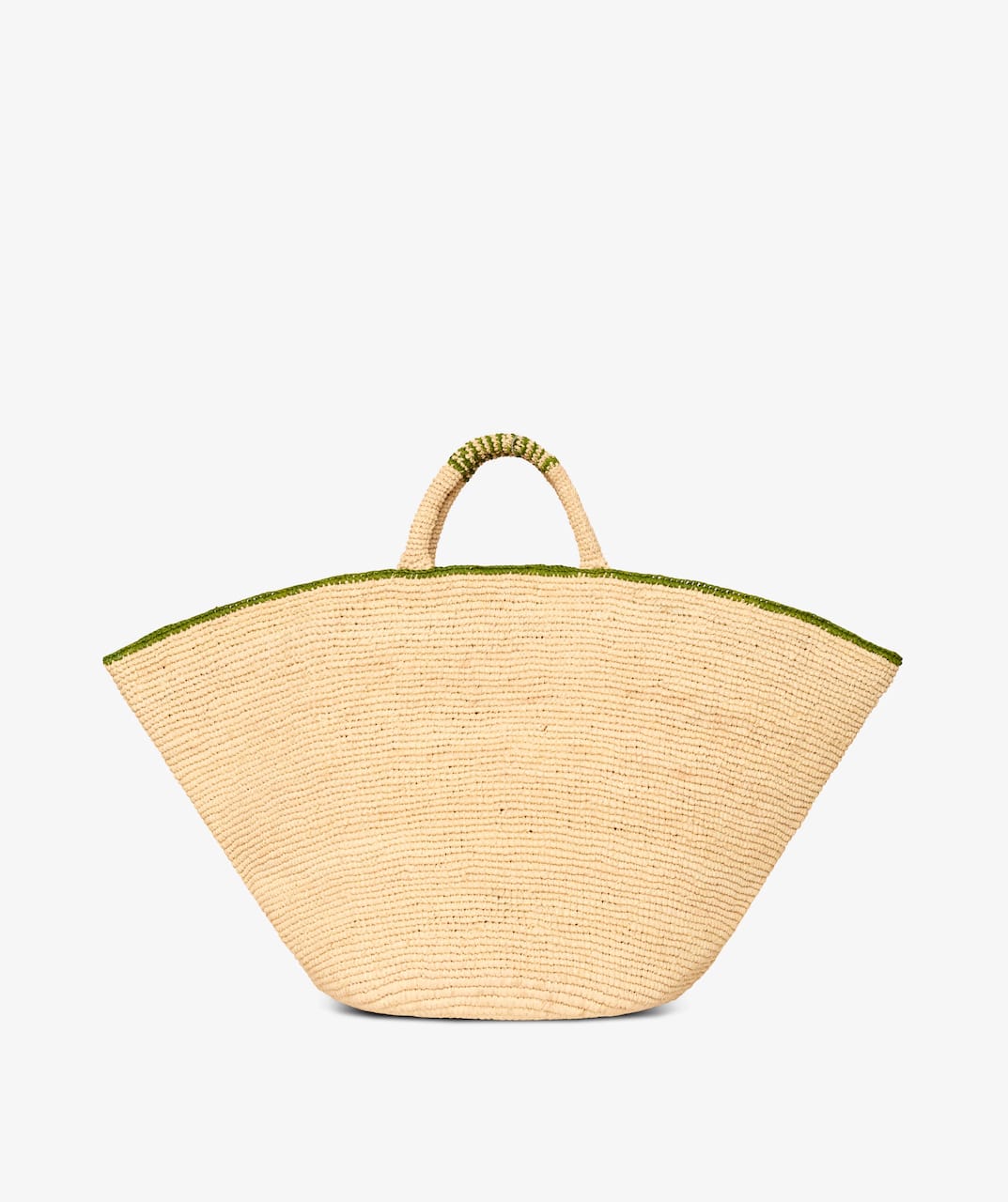 Beach Bag´en er flettet i lett, naturlig strå, med subtile khakigrønne detaljer som gir den et rolig, gjennomført uttrykk. Den føles sommerlig og uanstrengt – men samtidig tydelig i formen, slik at den holder det du trenger, uten å miste fasongen.