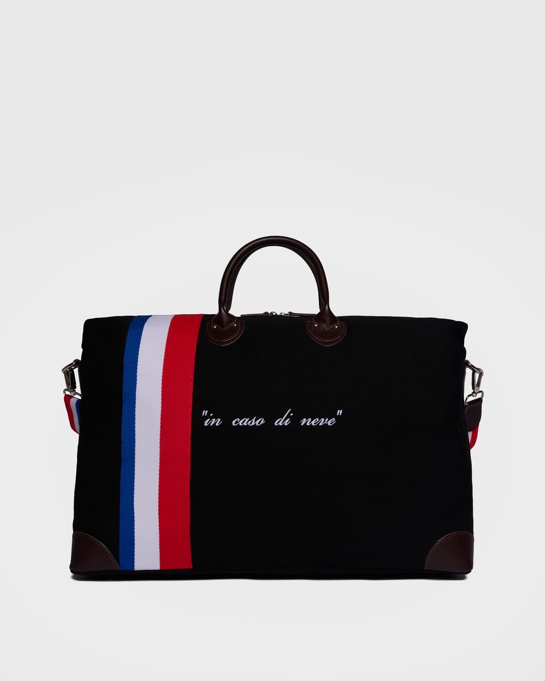 Den elegante teksten "in caso di neve", i tilfelle snø, setter prikken over i-en og gir et karakteristisk og internasjonalt preg som understreker samarbeidet. Med mulighet for å brodere egne initialer er dette den ideelle reisepartneren for deg som søker kvalitet, stil og sans for detaljer – selv når tempoet er som høyest.