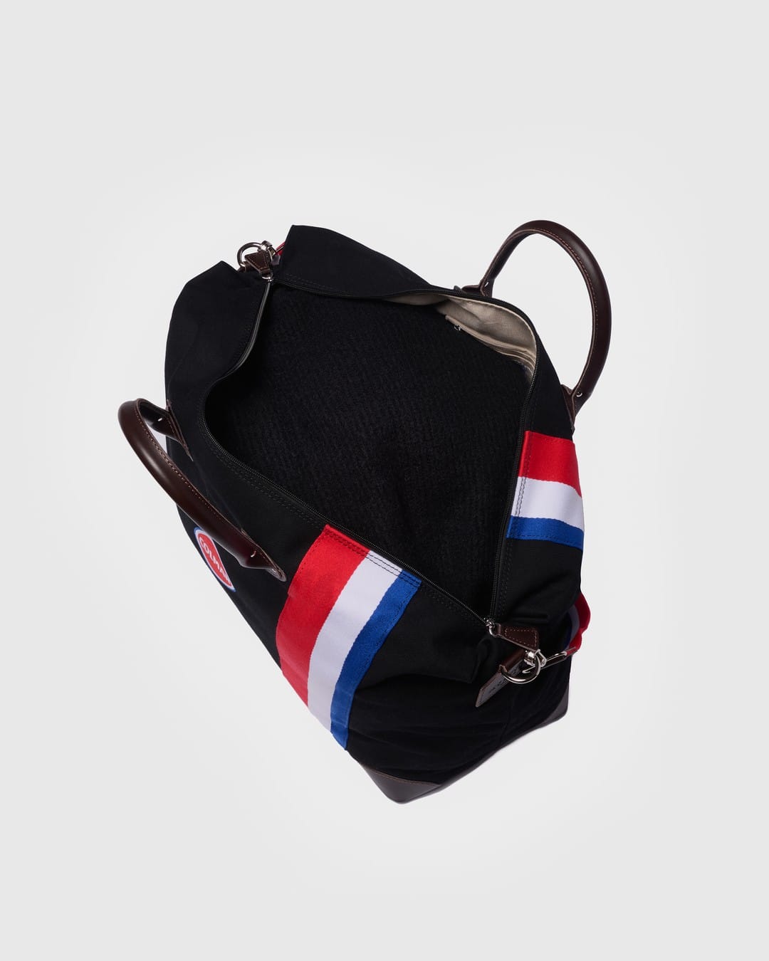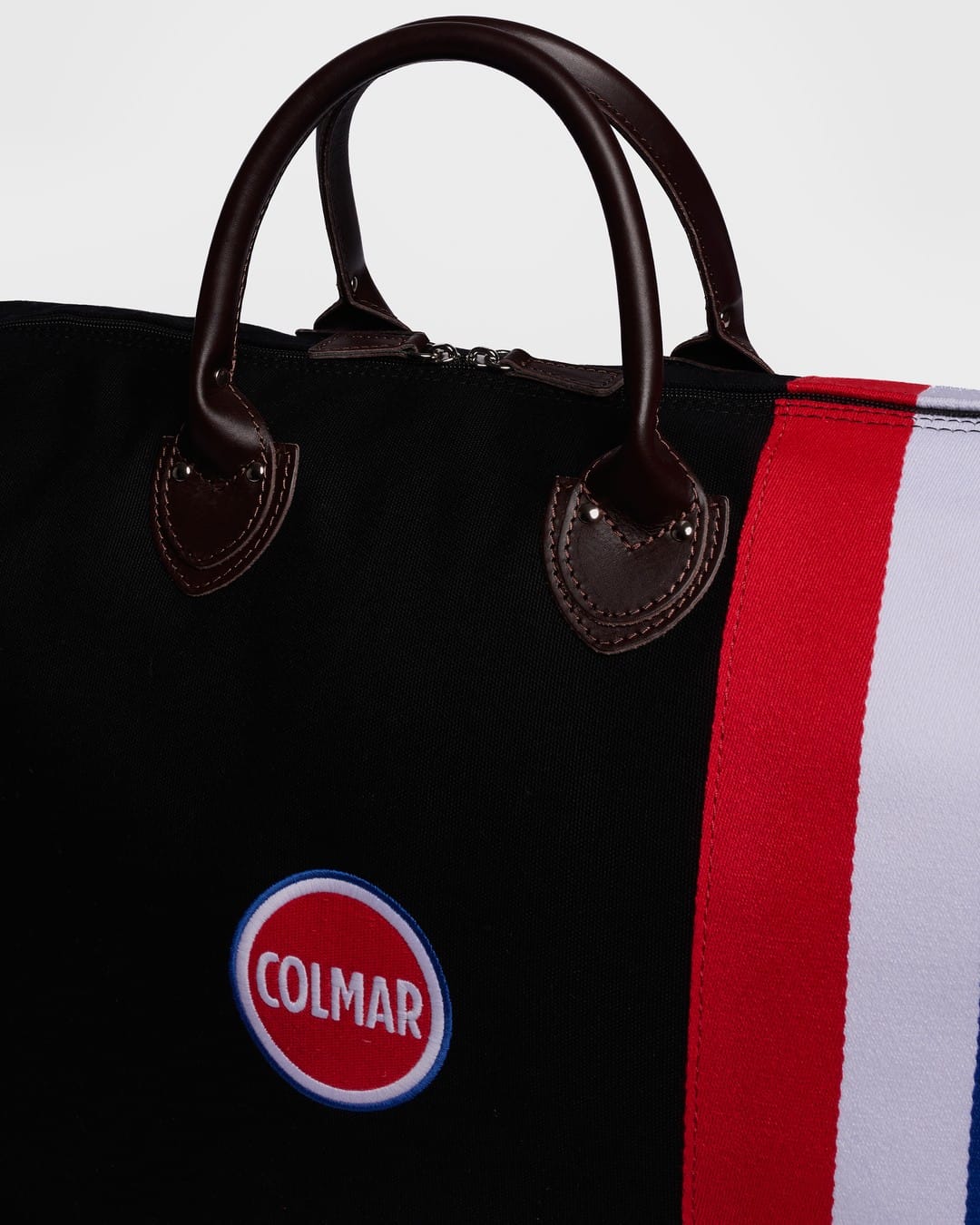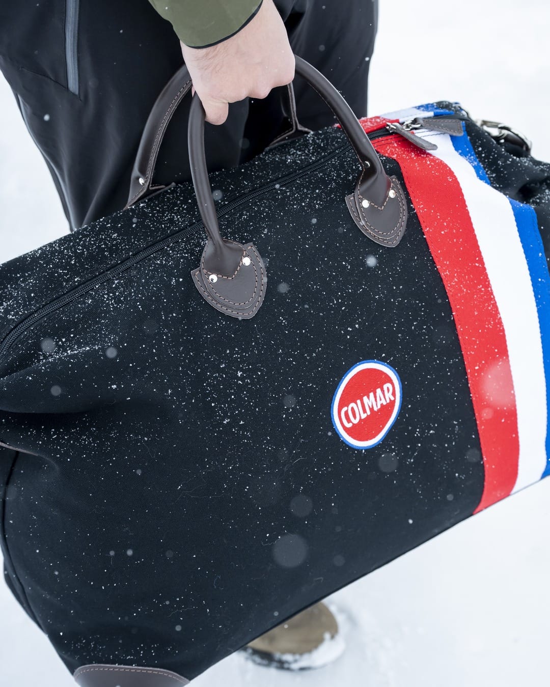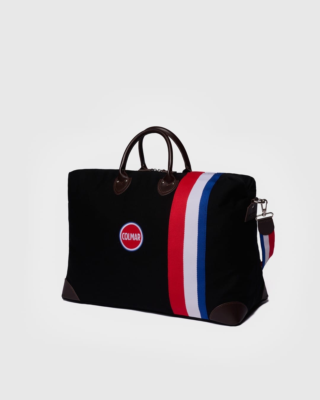 Harvard bagen i den store størrelsen er designet for å følge deg på snøfylte reiser med både praktisk funksjon og raffinement. Laget i sort kanvas og dekorert med røde, hvite og blå striper samt detaljer i brunt skinn, kombinerer den Colmars sporty energi med den tidløse elegansen My Style Bags er kjent for.