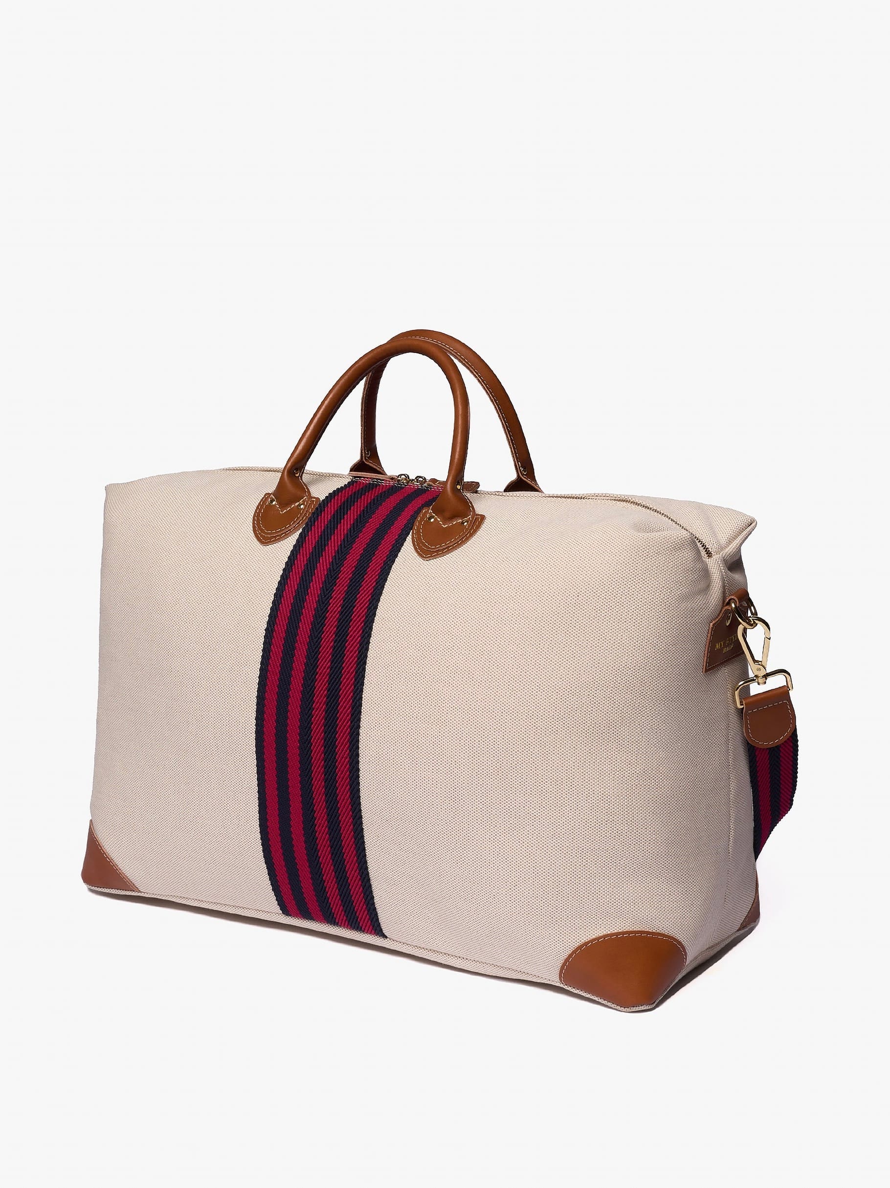 Sporty og elegant bag i slitesterk bomull, passer til weekend-pakking, 56 liter, vi anbefaler 3 cm på broderingen.