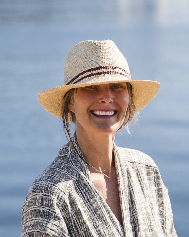 Heklet unisex hatt i raffia med bomullsbånd i delikat brun som passer til alt!