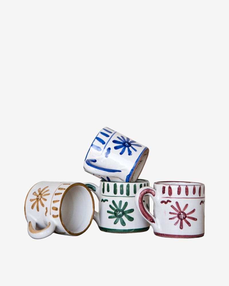 Gode krus i rustikk keramikk. Krusene er håndlaget og håndmalt for Stories by Kine på et lokalt verksted i Firenze.