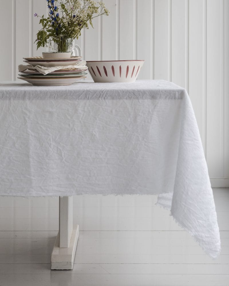 En hvit duk som skaper stemning før du har dekket bordet! Disse dukene i steinvasket lin fra Linen Tales har en myk, naturlig tekstur og avsluttes med diskré frynser som gir et uformelt, men gjennomført uttrykk. Like fine til søndagsmiddag som til hverdags.
