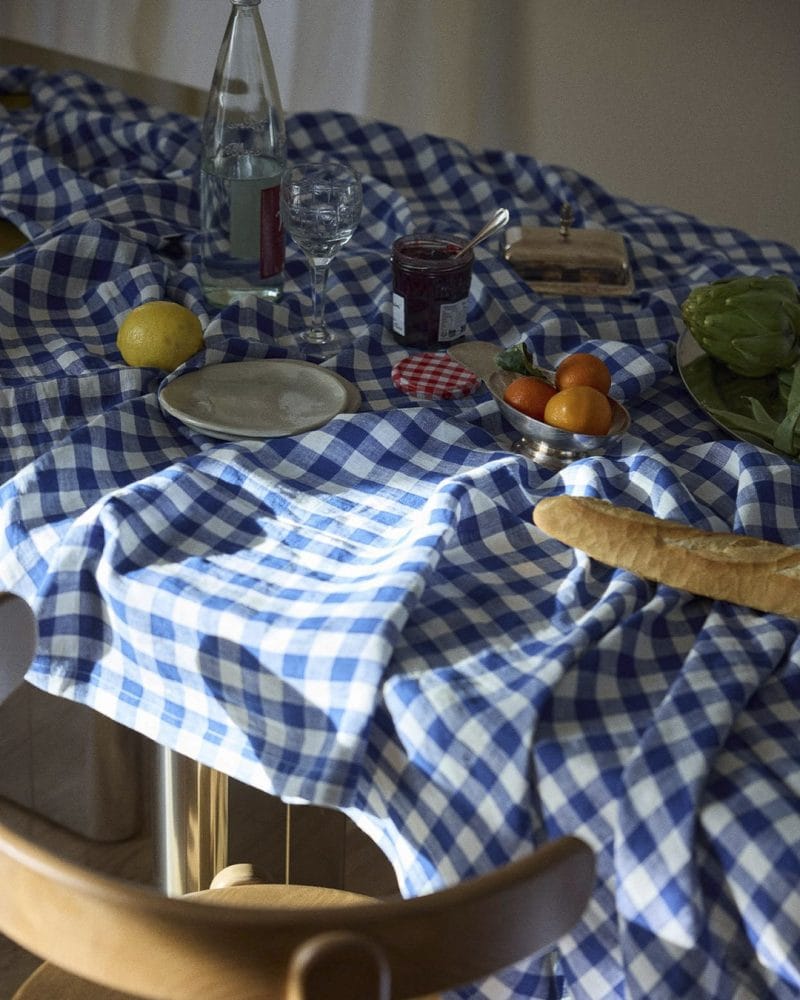 Blårutete duk i lin – fransk sjarm til bordet