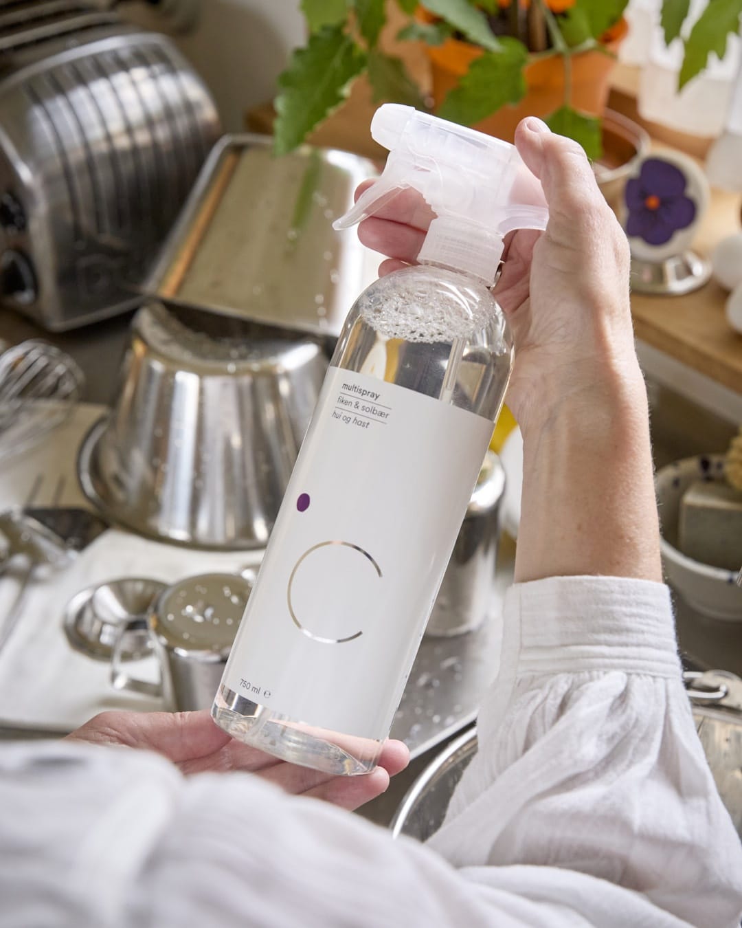 Tenk på multisprayen som en bøtte med såpevann – bare mye smartere. Den er laget av 99,7 % naturlige ingredienser og har økologisk duft av lavendel utviklet i Grasse, Frankrike.