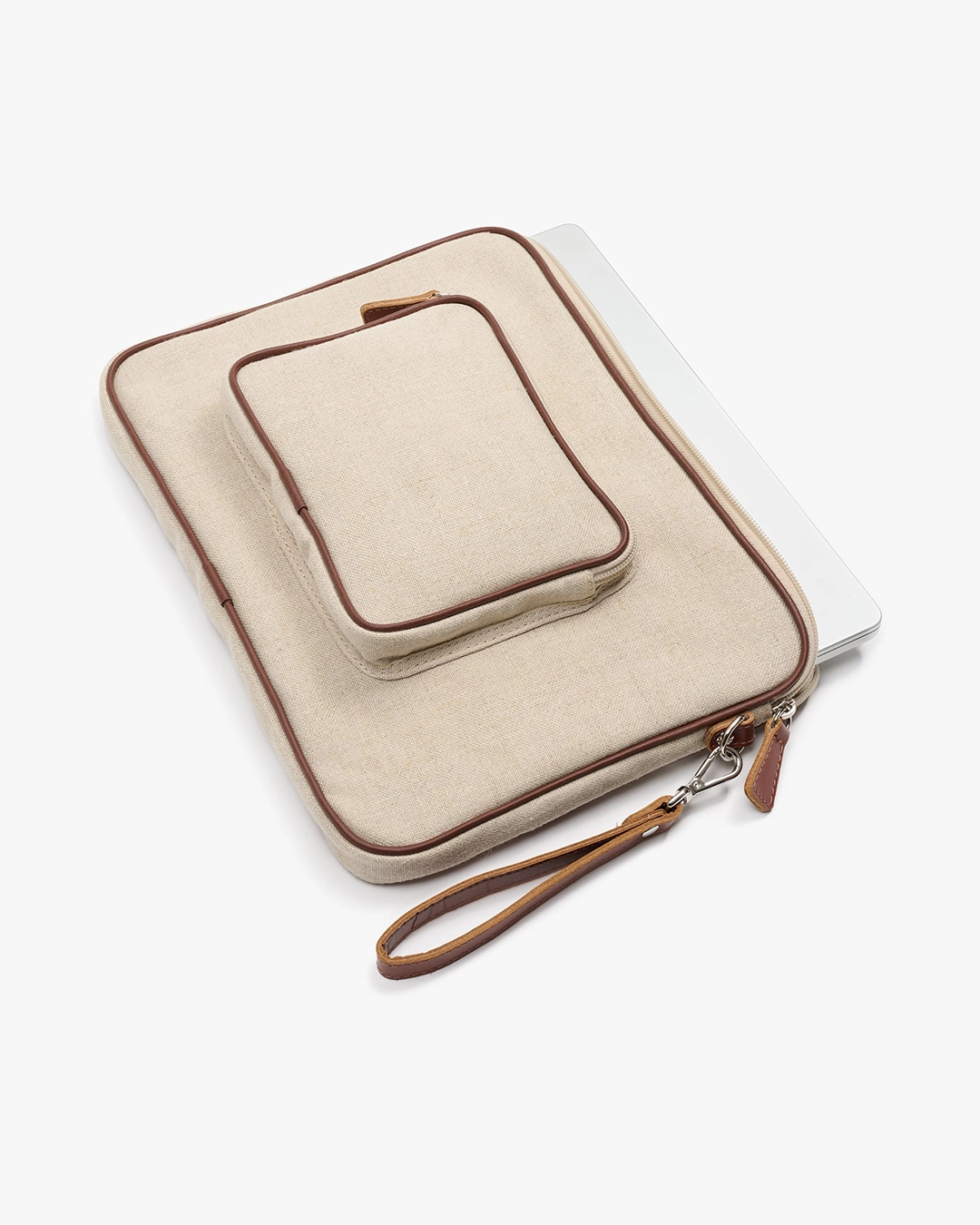 PC mappe i stilig og slitesterk lin. Holder laptops opp til 13 tommer, lader og ekstra utstyr trygt og beskyttet.