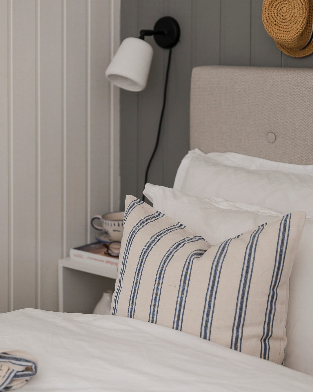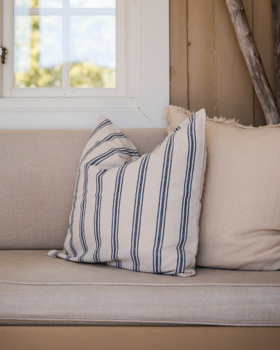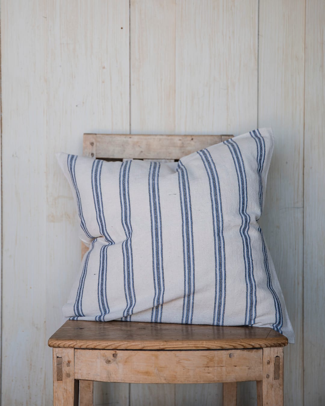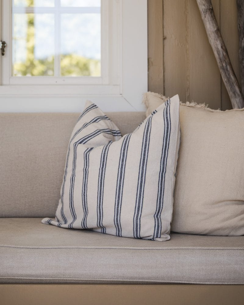 Nostalgisk putetrekk i blå striper 50 x 50 cm