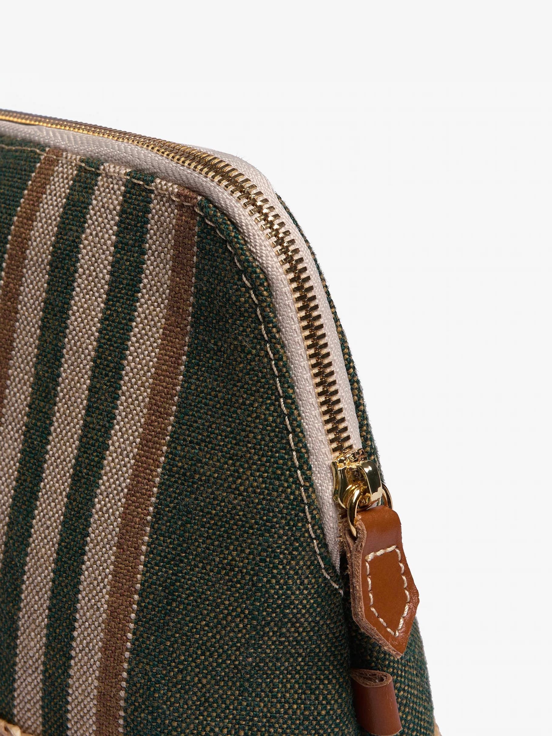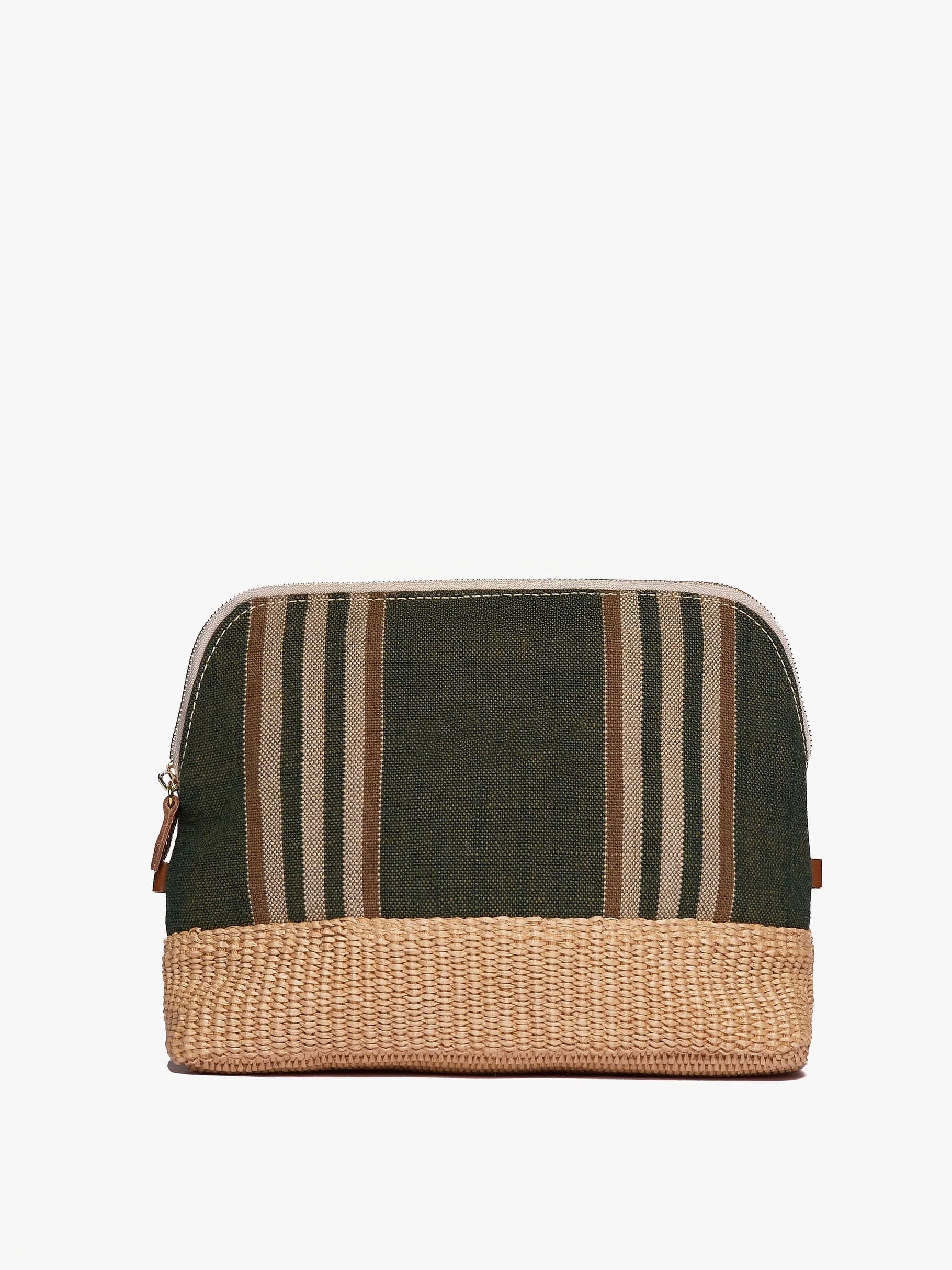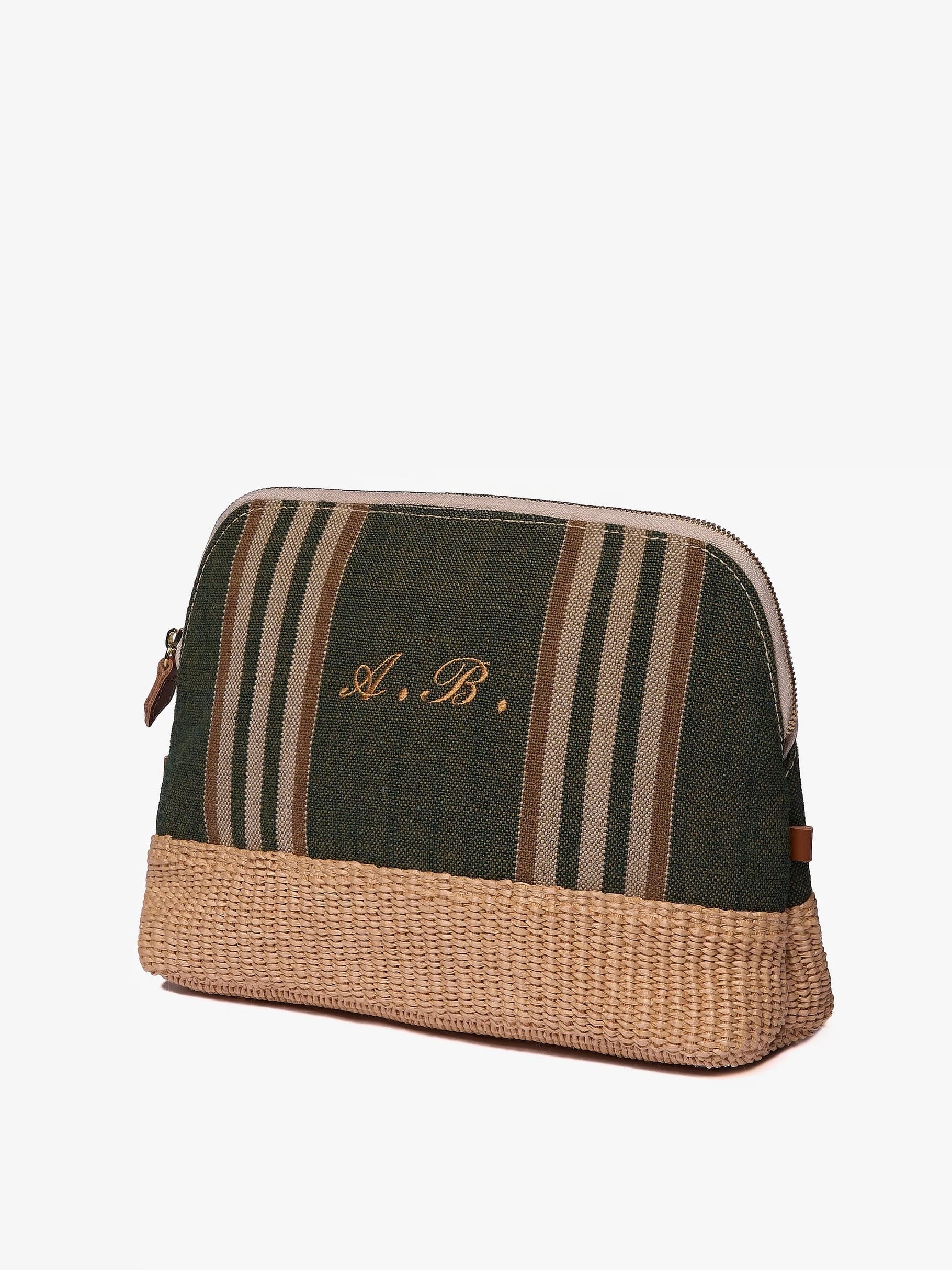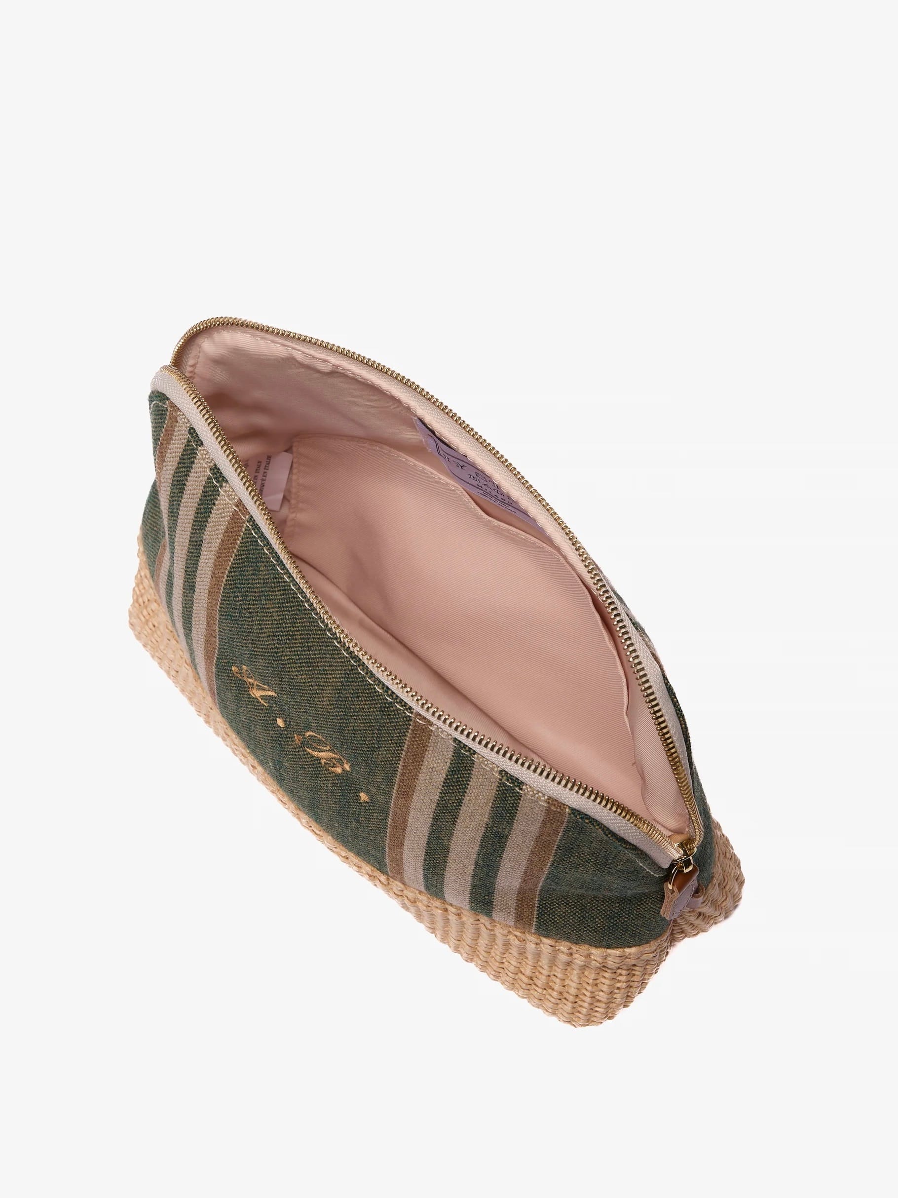 Toalettmappen i Antibes-serien kombinerer klassisk estetikk med praktisk funksjonalitet i bomull og raffia.
