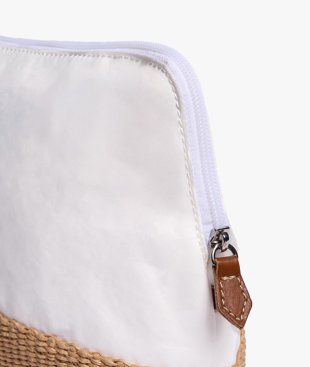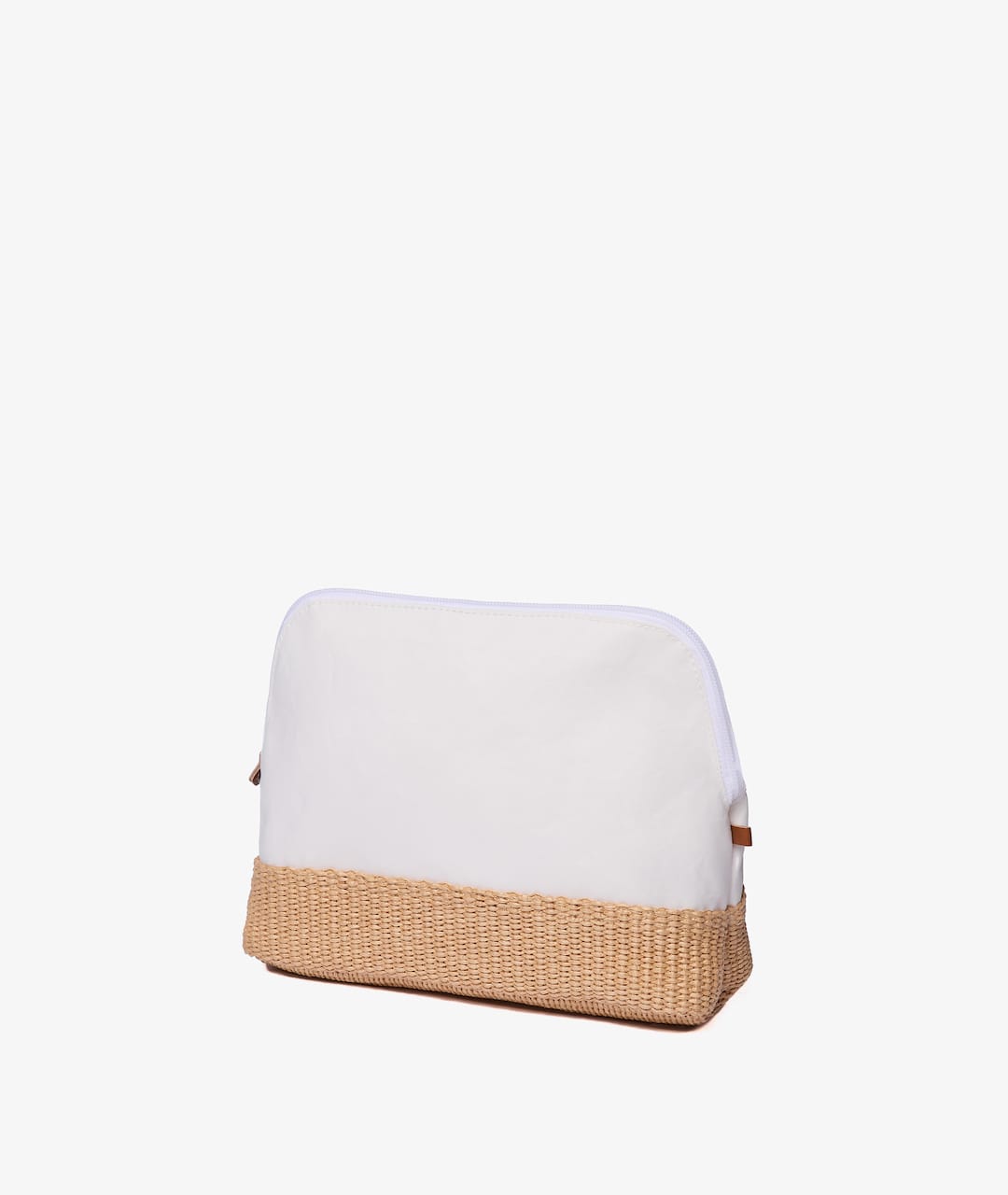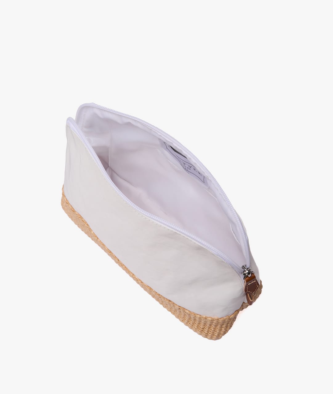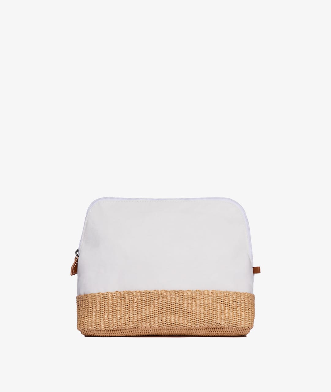 Toalettmappen i Kos-serien kombinerer klassisk estetikk med praktisk funksjonalitet i sommerlig seilduk og raffia.